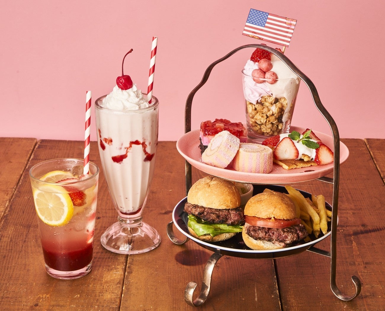 「ストロベリースイーツ&ミニバーガーのアフタヌーンティープラン」3,000円(税込)