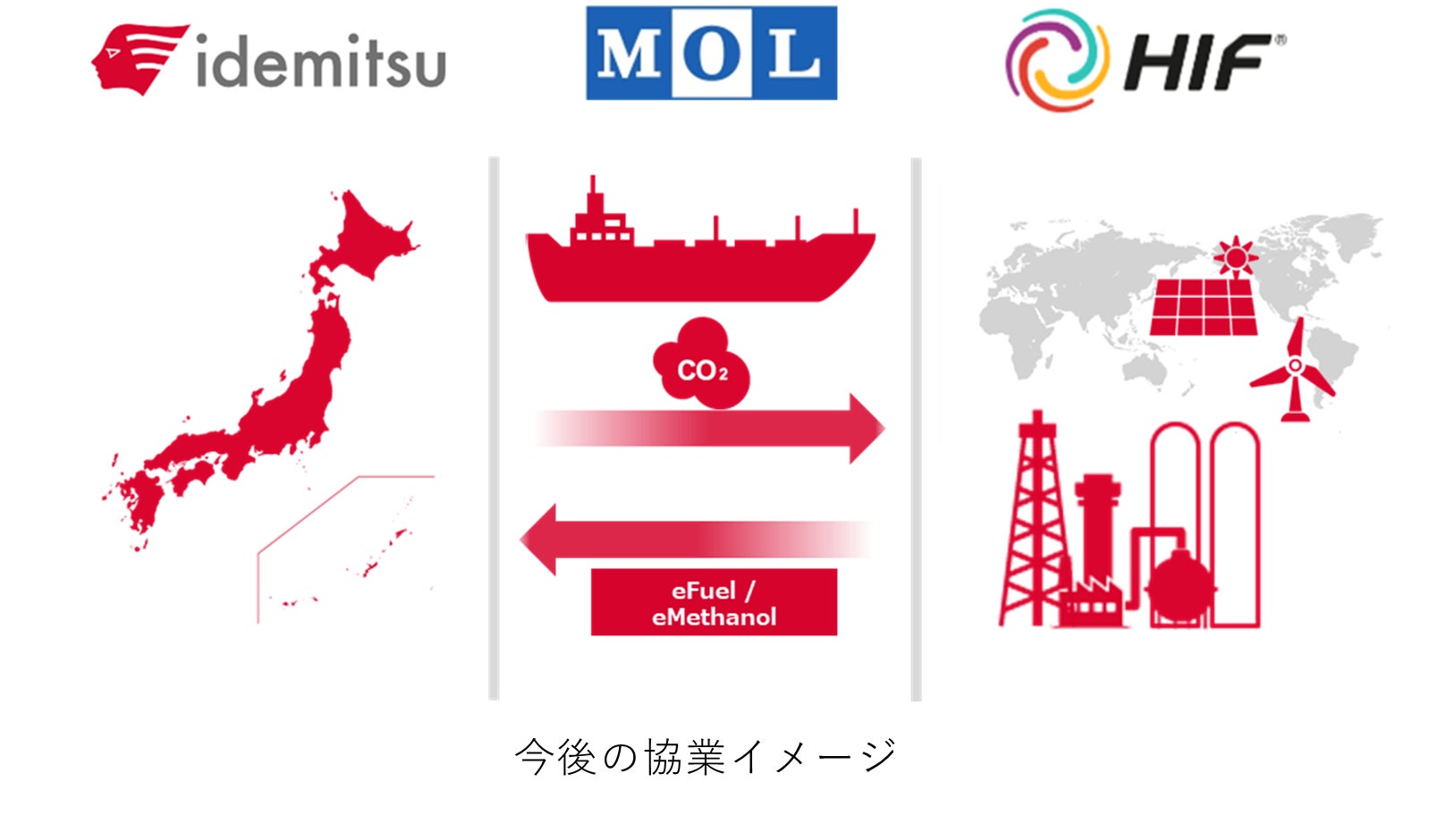 出光興産株式会社(本社:東京都千代田区、代表取締役社長:木藤 俊一、以下「出光興産」)は、株式会社商船三井(以下「商船三井」)、合成燃料/合成メタノールを製造するグローバル企業のHIF Globalの子会社であるHIF USA LLCおよびHIF Asia Pacific Pty Limited(以下「HIF」)と、CO2の海上輸送を含む合成燃料(e-fuel)/合成メタノール(e-methanol)のサプライチェーンを共同開発することで合意しMOUを締結しました。