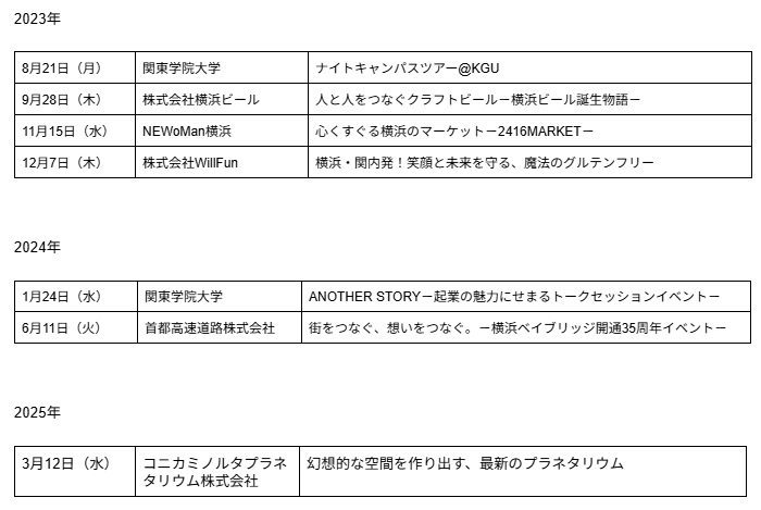 ※ 過去のイベント実績(左から開催日、連携事業者・団体、企画テーマ)