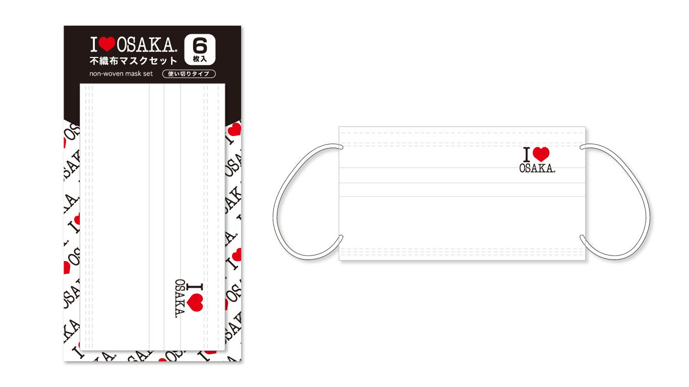 ◎アイラブ大阪不織布マスクセット(500円+税・サイズ:約W170×H95mm/使い切りタイプ:6枚入)