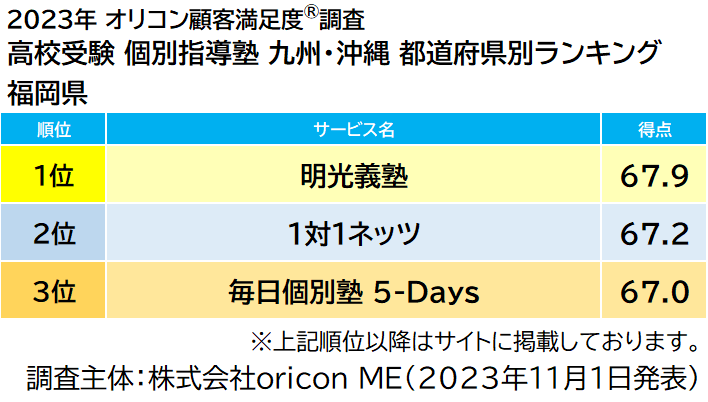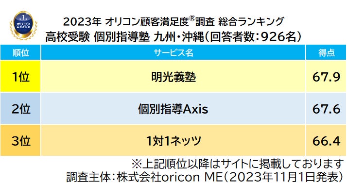 2023年 オリコン顧客満足度®調査 高校受験 個別指導塾 九州・沖縄