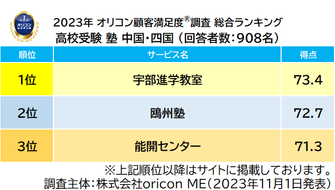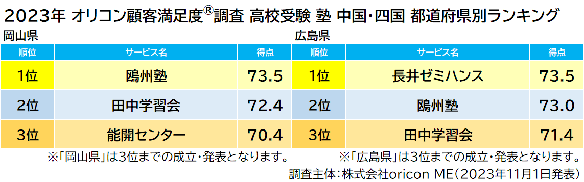 2023年 オリコン顧客満足度®調査 高校受験 塾 中国・四国