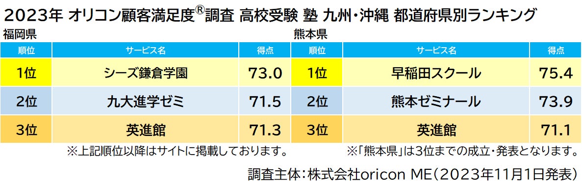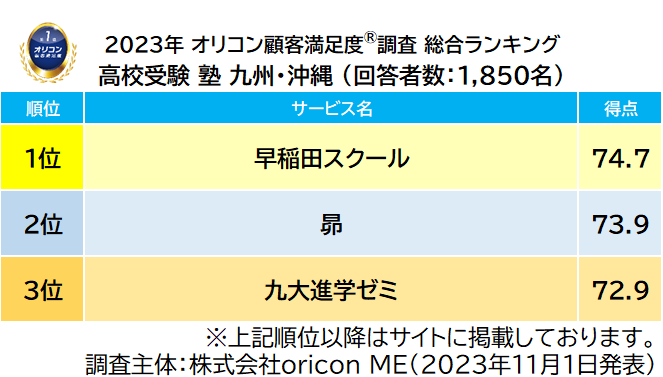 2023年 オリコン顧客満足度®調査 高校受験 塾 九州・沖縄