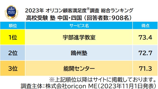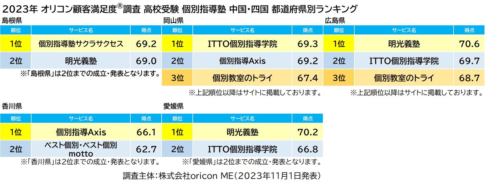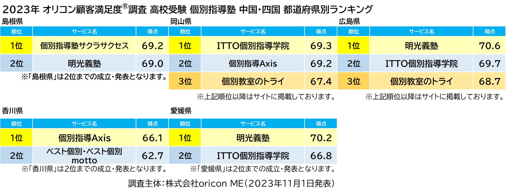 2023年 オリコン顧客満足度®調査 高校受験 個別指導塾 中国・四国