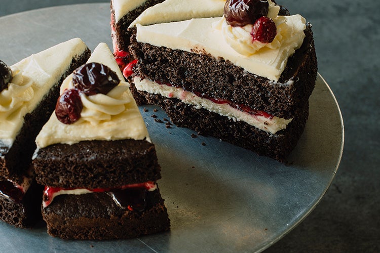 大人の味わいに仕立てた、ドイツ伝統のチョコレートチェリーケーキ。塩味のきいたビターな生地にクリームチーズのフロスティングとチェリージャムを挟み、ダーク&サワーの2種のチェリーを愛らしく飾りました。生地はふんわり仕上がるオイルベースで、リッチな味わいを軽やかにたのしめます。
