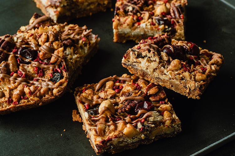 アメリカで愛されるお菓子、セブンレイヤーバーをヒントにした、甘さ控えめのキャラメルチョコバー。ビター&キャラメルチョコ、ビスケット、ミューズリー、オートミール、クランベリー、3種のナッツ、練乳を合わせ、塩味をきかせて焼き上げました。噛むほどにおいしさが広がります。