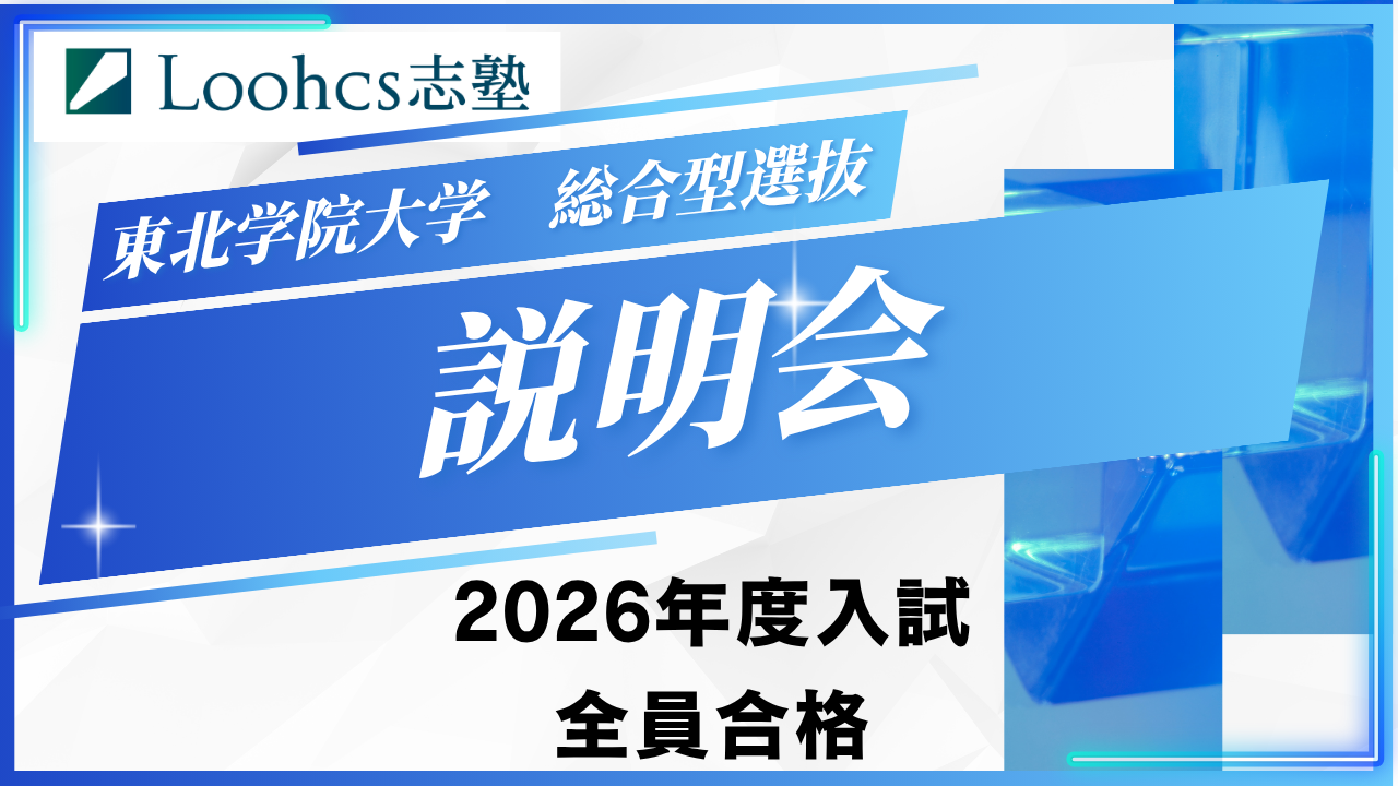 昨年度、当塾から東北学院大学の総合型選抜を受験した生徒は3名全員が合格(合格率100%)を果たしました。本イベントでは、実際に受験した生徒のリアルな声と蓄積されたデータを元に、志望理由書の書き方から面接・プレゼンの対策までを多角的に分析・解説します。