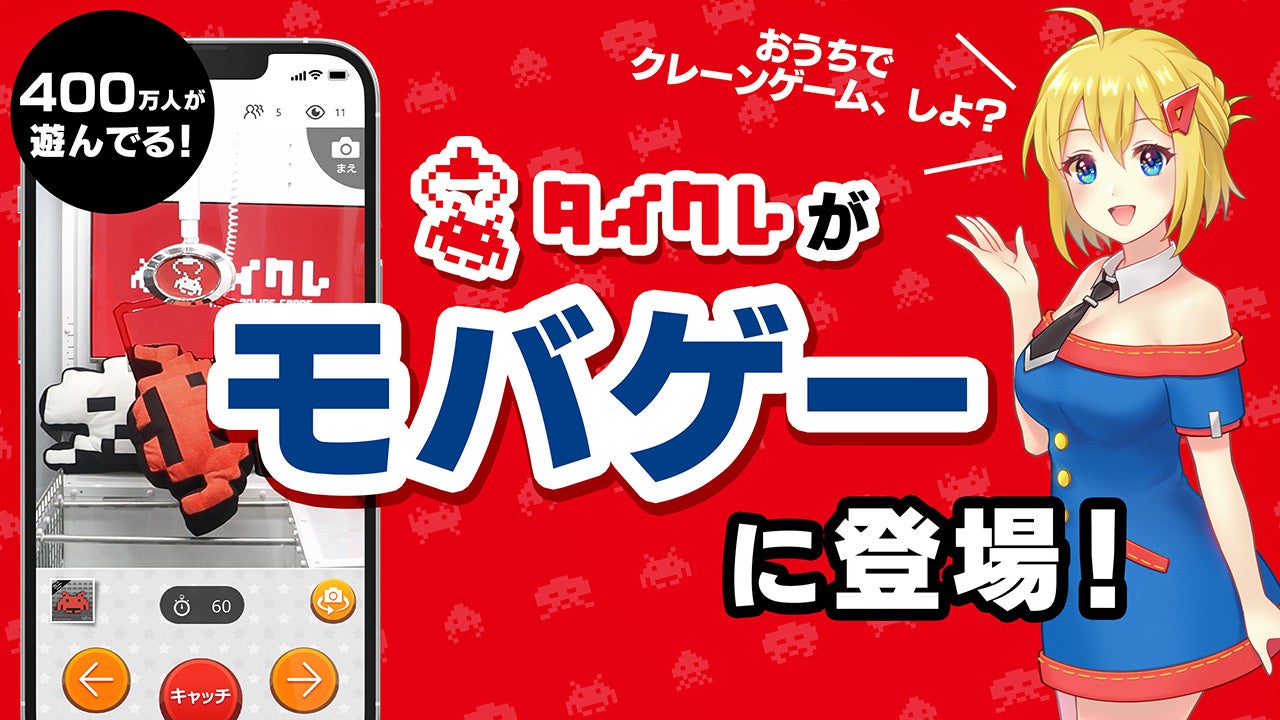 株式会社タイトー(本社:東京都新宿区、以下タイトー)が運営する、おうちでクレーンゲームが楽しめる「タイトーオンラインクレーン(以下タイクレ)」は、本日11月25日(月)より株式会社ディー・エヌ・エーが提供するゲームプラットフォーム「Mobage(以下モバゲー)」にて配信を開始いたします。また、モバゲー版配信を記念して、11月中に5,000モバコイン以上ご購入されたお客様に、プレゼント期間中毎日、1プレイチケットをプレゼントするキャンペーンを開催中です。