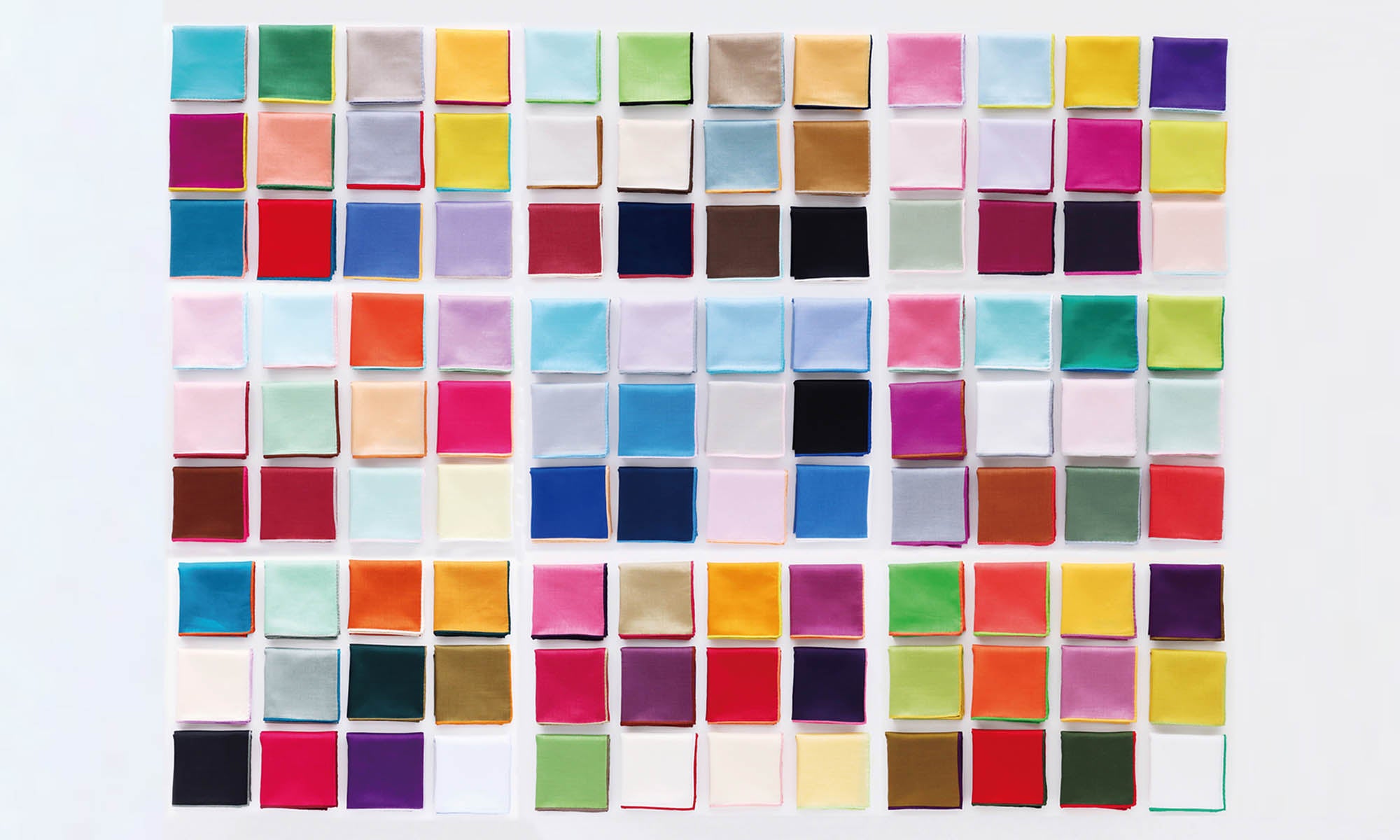 108枚の無地のハンカチには、それぞれに名前と意味があります。色は、言葉では伝えきれない想いや空気を映し出すもの。どんな人も、どんなシーンでも、自分の色、大切な人の色を選べる。白から始まり、色が重なり、多様に広がっていく。108 colorは、色を通して人と人をつなぐ、「もう一つの言葉」です。