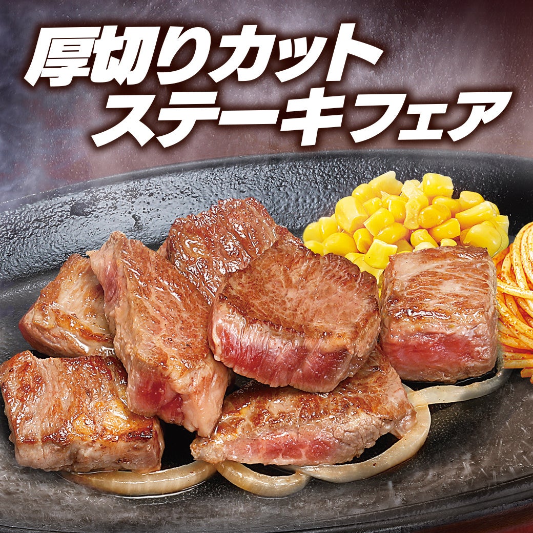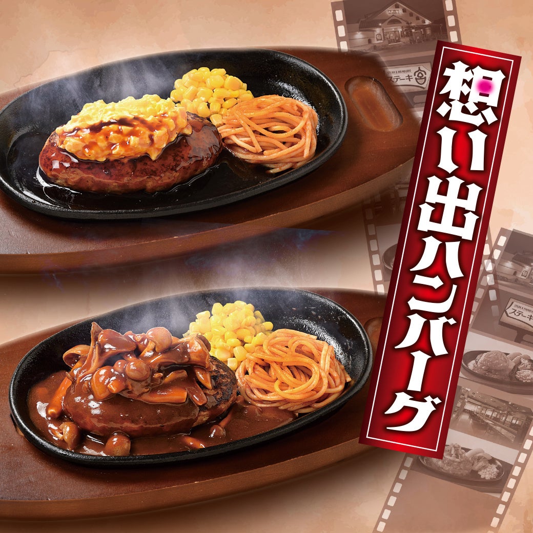 厳選したステーキ用のお肉を店舗で丁寧に厚切りカットして焼き上げる「厚切りカットステーキ」、2025年に迎える50周年記念復活メニュー第1弾!かつて愛された懐かしの味を再現した「想い出ハンバーグ」が登場です。