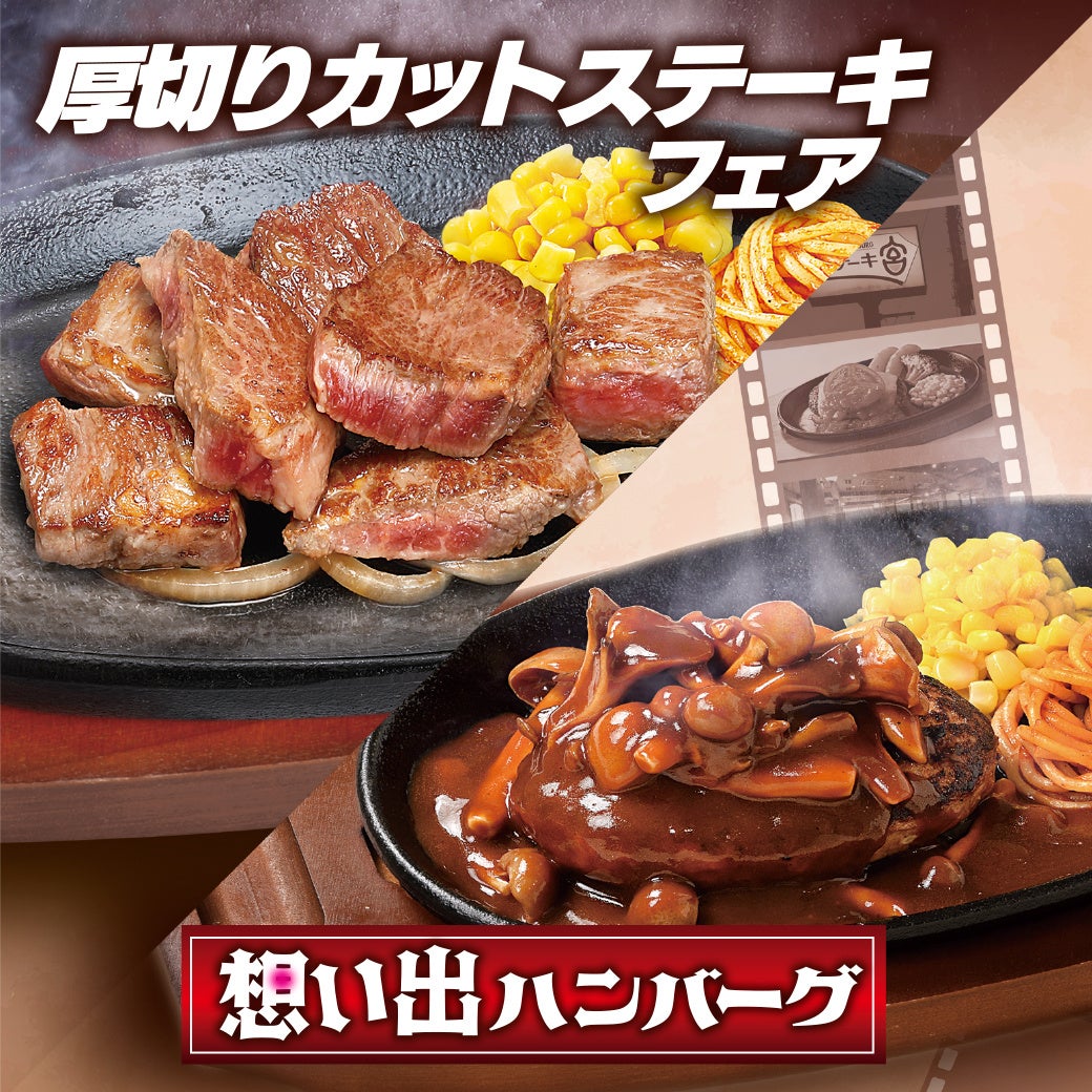 【ステーキ宮】柔らかくて食べやすい「厚切りカットステーキフェア」&50周年記念第1弾!復活メニューの「想い出ハンバーグ」が登場