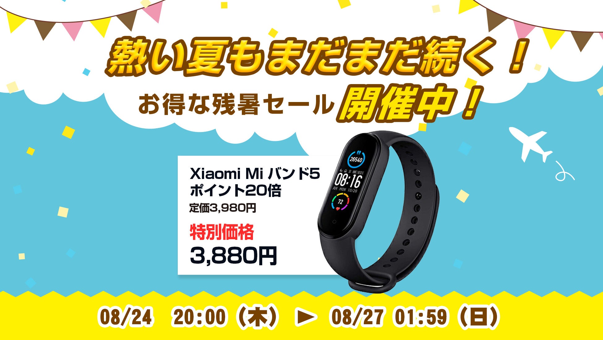楽天「Show !t」でシャオミMiバンド5購入でポイント20倍プレゼント!さらに3,880円のセール価格で販売。全商品ポイント10倍、8月24日(木)20時開始、楽天お買い物マラソンに参加