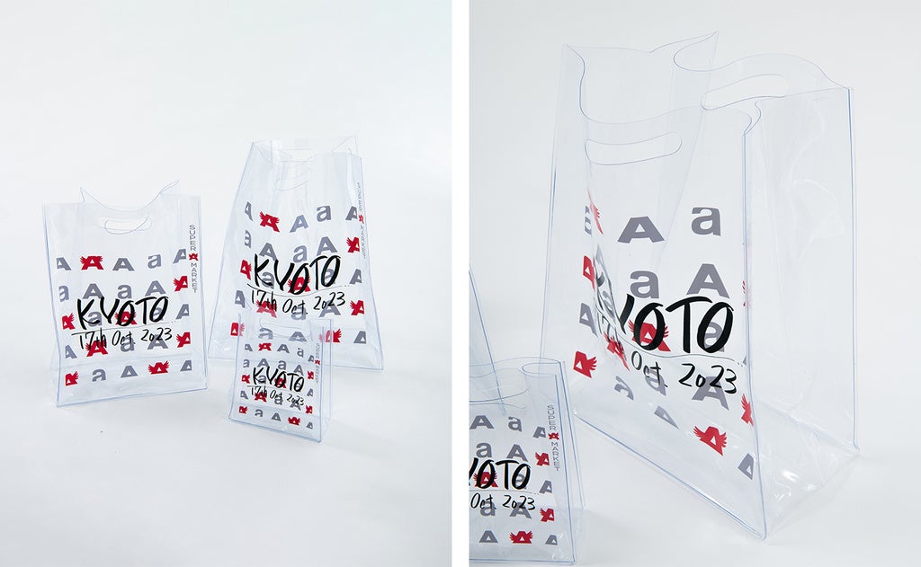 3号店オープンを記念して、オリジナルのグラフィックとAロゴをモチーフにしたアイコニックなPVCバックをS,M,Lの3サイズで展開。