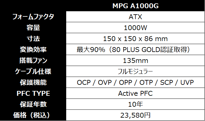 製品URL:https://jp.msi.com/Power-Supply/MPG-A1000G