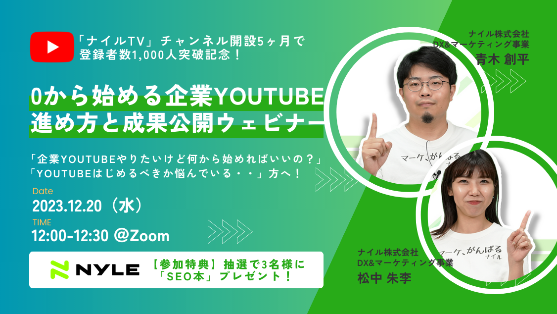 ナイルのマーケティングチームでは、今年6月にYouTubeチャンネルを開設し、約5ヶ月でチャンネル登録者数1,000人を突破しました。