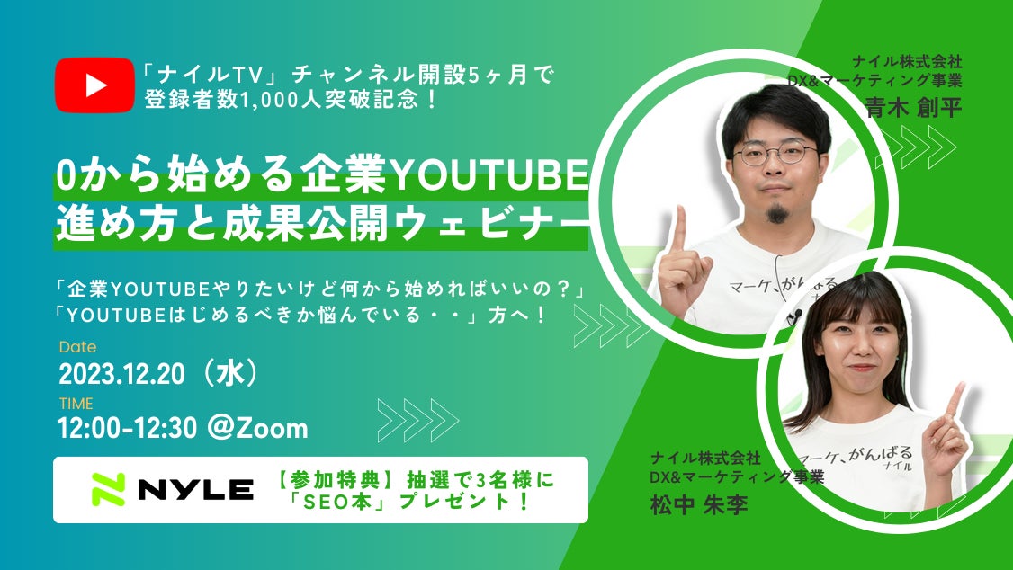 0からはじめる企業YouTube!進め方と成果公開ウェビナー開催|12月20日(水)12:00-12:30@Zoom