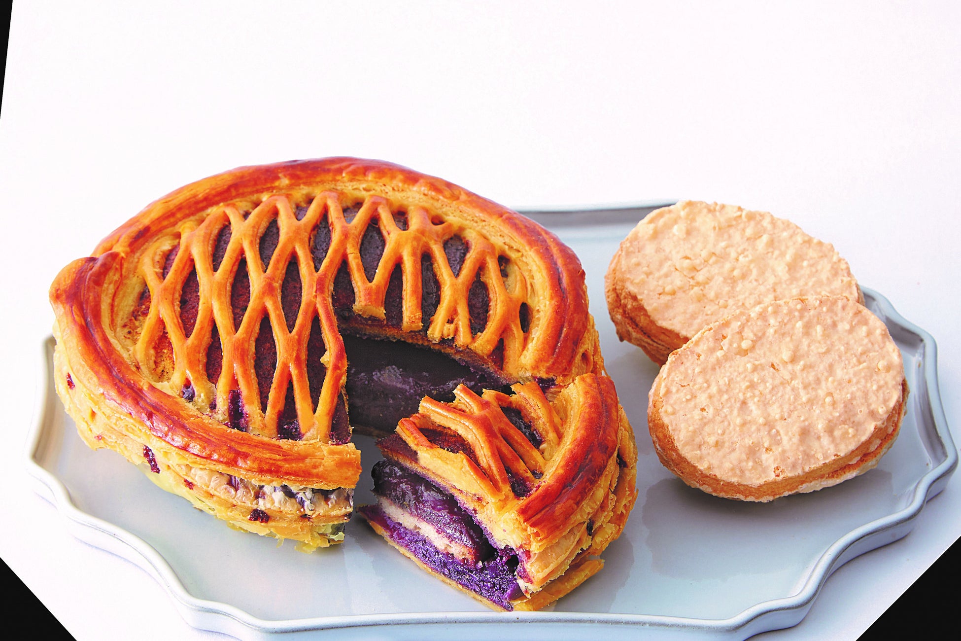㊧ブルーベリーパイ(1個/経約14cm)2,160円 ㊨ダックワーズ (1袋/2個入) 486円