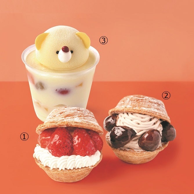 ①いちごのキャペリーヌ(1個)627円 新商品 ②栗のキャペリーヌ(1個)627円 新商品