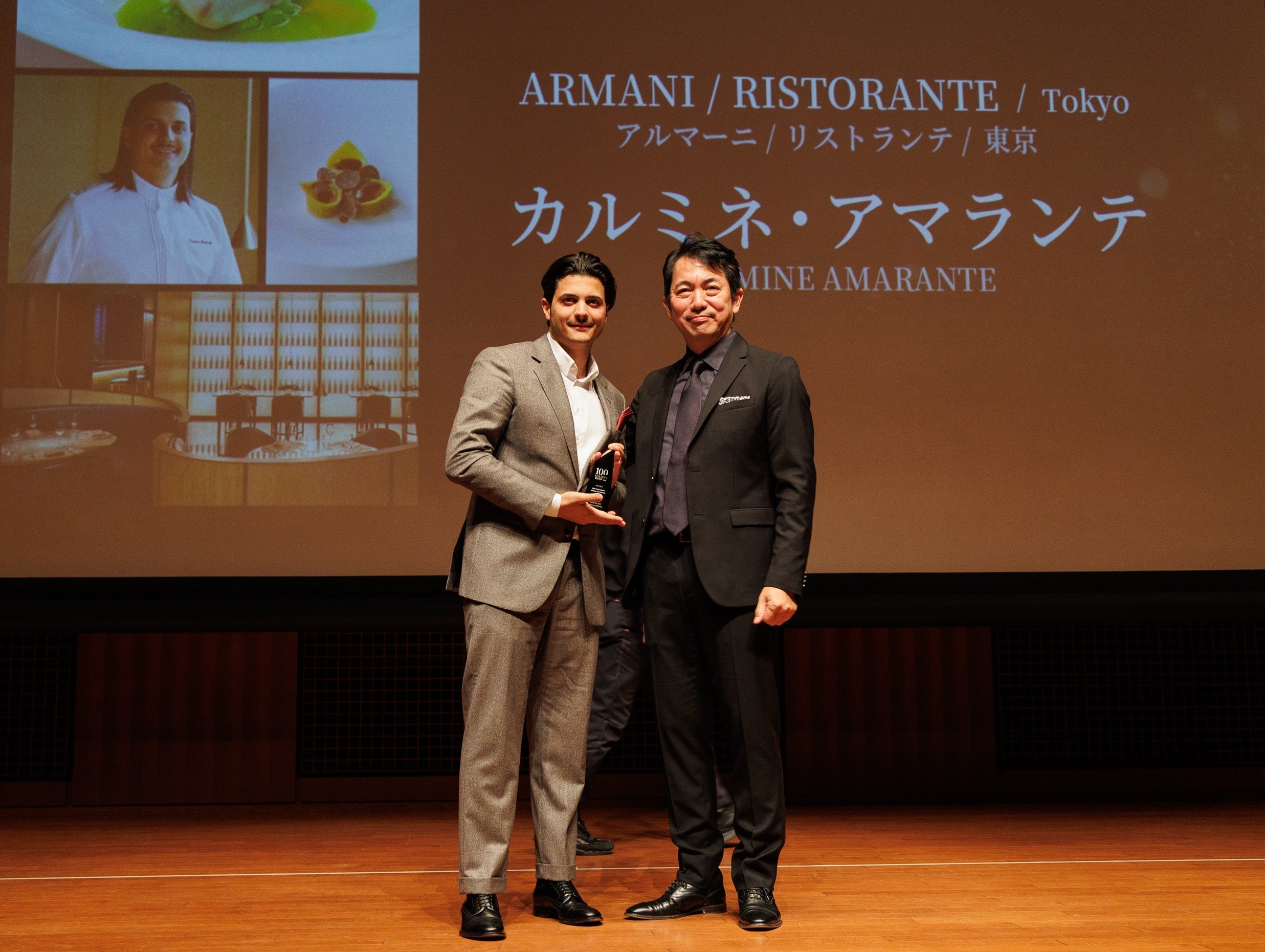 料理はもとより哲学、実績、表現方法、ホスピタリティ、サービス、ワインリスト、空間、未来や環境への取り組みなど、年間を通じて総合的に最も優秀な活動を継続して行ったレストランに授与されるベストレストラン賞は、カルミネ・アマランテシェフ率いる「アルマーニ / リストランテ」が受賞。