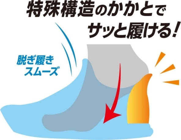 スリッポンの良さである“脱ぎ履きのしやすさ”を追求し、かかと部分の形状にこだわりました。かかと部分が内側に折れないような構造にすることで、スムーズに脱ぎ履きができます。