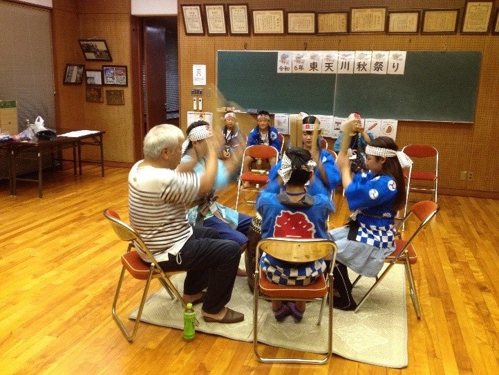 現在、太鼓を叩く地元の子どもたちは祭り本番に向け練習の真っ最中。週1回、地元の消防団員などの指導のもと公民館や神社で練習を続けていて、練習場には「サー、サー、ヨイショー、ヨイショー」という元気な掛け声が響き渡っています