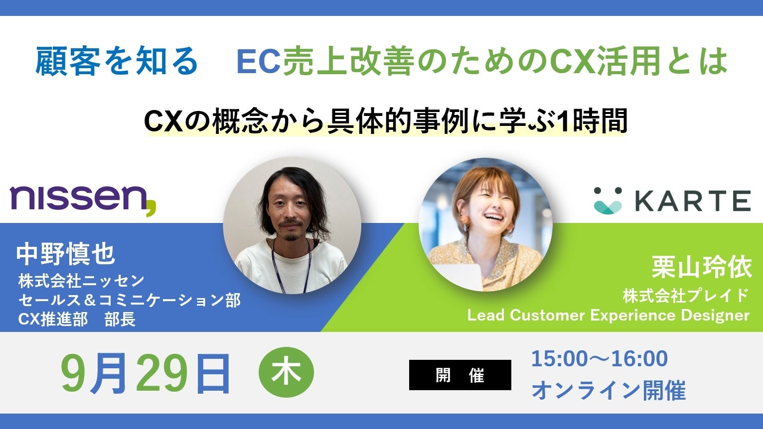 また、ニッセンからは、自社EC「ニッセンオンライン」のCX向上の背景として「KARTE」導入前の課題、導入後の改善事例やtips、CX運用体制などをお伝えします。