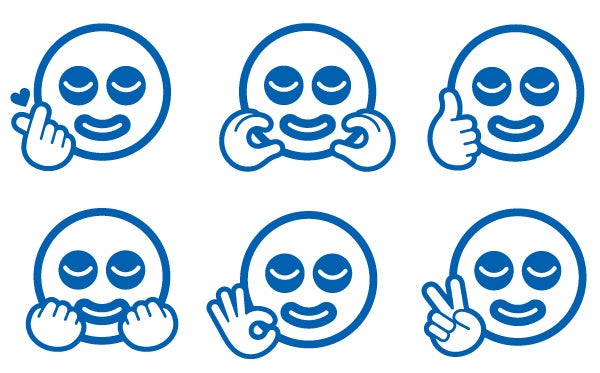 「透明白肌」でお馴染みのキャラクターが指ハートやピースサインなど可愛いポーズに挑戦中。