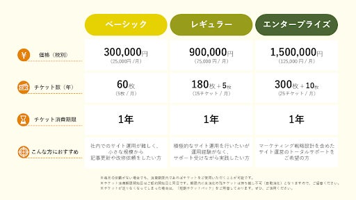 お客様のサイト運用状況やご要望をヒアリングさせていただき、最適なプランをご提案可能なサービスです。