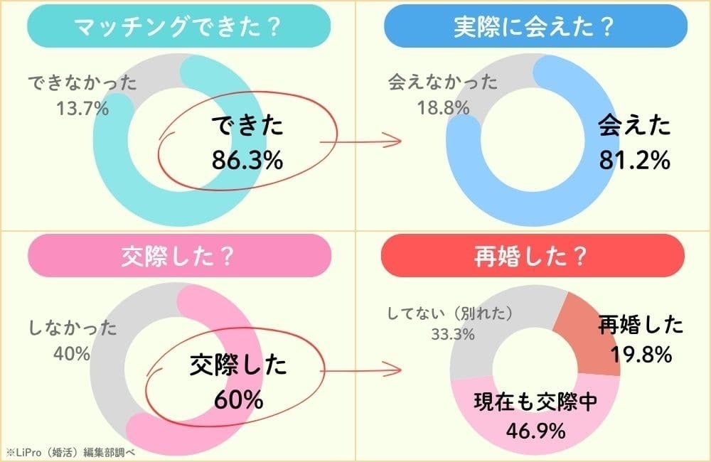 実際に会った人のうち交際に発展したのは約6割。そのうち再婚したのは19.8%