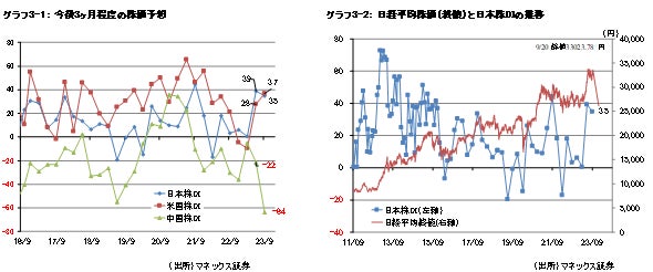【日本株DI】(2023年6月)39 → (2023年9月)35(前回比 -4ポイント)