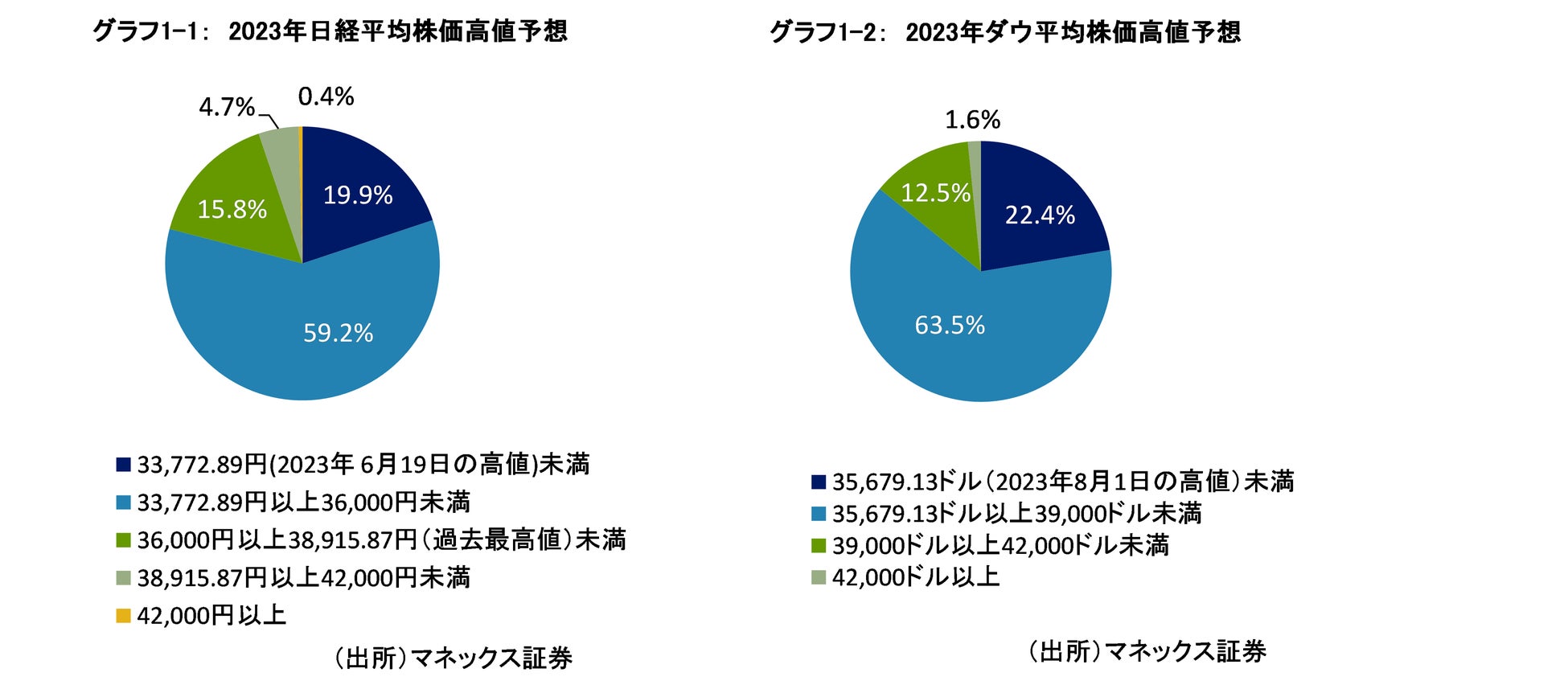 特別調査の1つ目として、2023年の日経平均株価、ダウ平均株価の高値予想を調査しました。