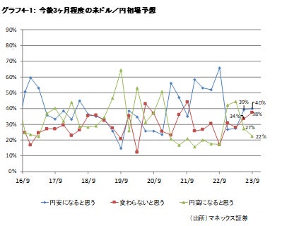 【円安になると思う】(2023年6月)39% →(2023年9月)40%(前回比+1%)