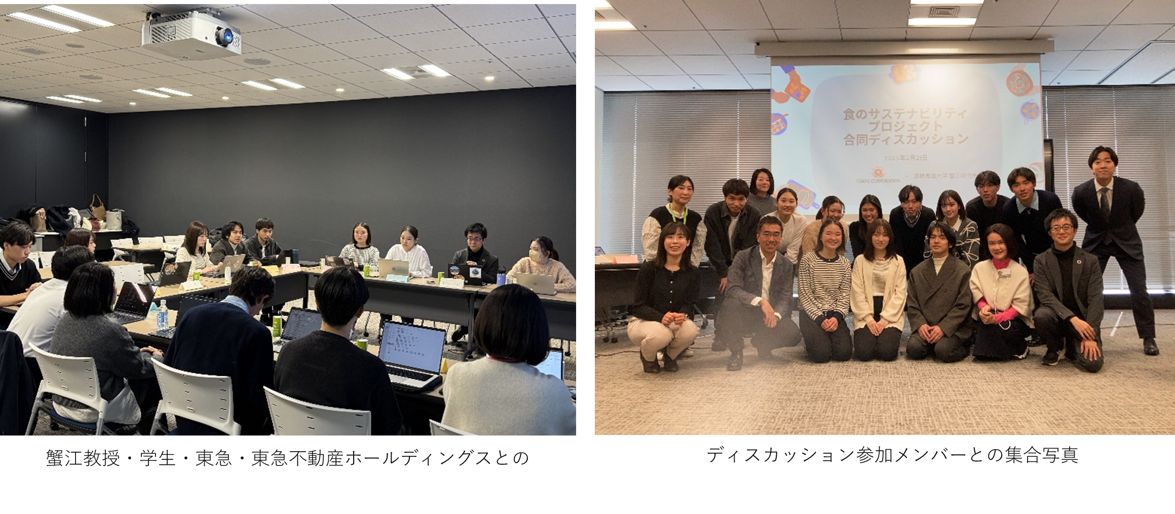 また、集計データを元に蟹江研究会・東急・東急不動産ホールディングスの3者にてディスカッションを行い、飲食店の「食のサステナビリティ」に関する取組みや意識、課題などについて意見交換し、学生目線での提案もなされました。