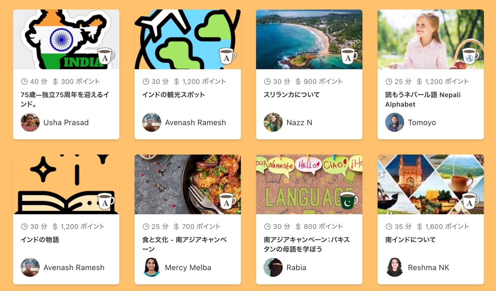 2022年9月は「南アジア」をテーマに、インドやネパール、バングラデシュなどの地域に関連する言語・文化レッスンを世界の講師陣から募集、27種類のレッスンが集まりました。