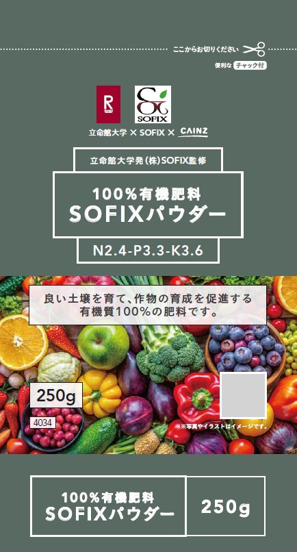 株式会社カインズ(本部:埼玉県本庄市、代表取締役社長 CEO:高家 正行、以下、カインズ)、株式会社SOFIX(滋賀県草津市、代表取締役:久保 幹、以下「SOFIX」)、立命館大学(本部:京都市中京区、学長:仲谷 善雄)は、土壌分析技術「SOFIX」を用いた農業肥料を共同開発しました。商品は、2024年12月24日からカインズ 甲賀店(滋賀県)、カインズ 亀岡店(京都府)とオンラインショップにて順次限定販売を開始しています。