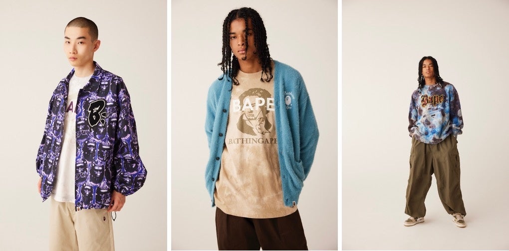 東京に拠点を構え、日本発信のトレンドを提案。1993年のブランド設立以来、ストリートファッションのシンボルであり続け、30年にわたってシーンを牽引。これまでに「エイプヘッド」「ベイプカモ」「ベイプスタ」「シャークフーディ」「ベイビーマイロ®」といったアイコニックなデザインやアイテム、オリジナルパターン&キャラクターを発表。現在はメンズ、レディース、キッズとラインを拡充させ、日本国内およびアメリカ、イギリス、フランス、中国、 更にアジア諸国に店舗を展開し世界中の幅広い層からの高い支持を獲得している。また名立たるインターナショナルブランド、著名アーティストとのコラボレーションも数多く成功させ、ファッションやアパレルといったカテゴリーにとらわれない、ジャンルレスでフレキシブルな活動を行っている。