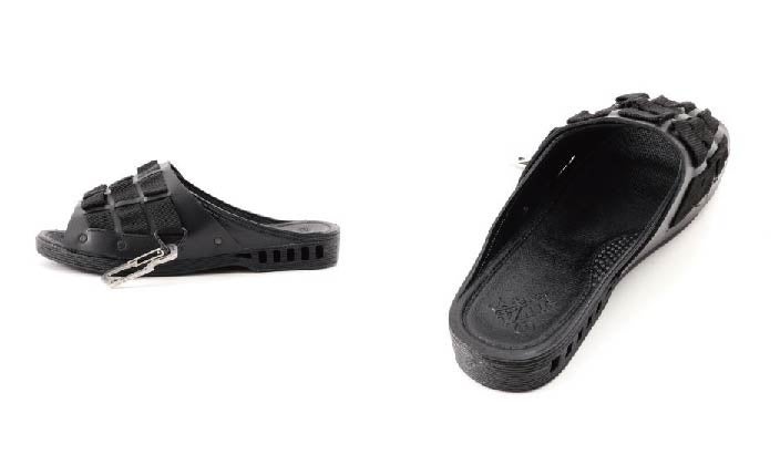 通称「便所サンダル」、「ベンサン」と呼ばれるPVC素材のサンダル。その履き心地、堅牢性、抗菌機能から病院や学校など公共施設の多くで何十年と日本人に親しまれてきました。
