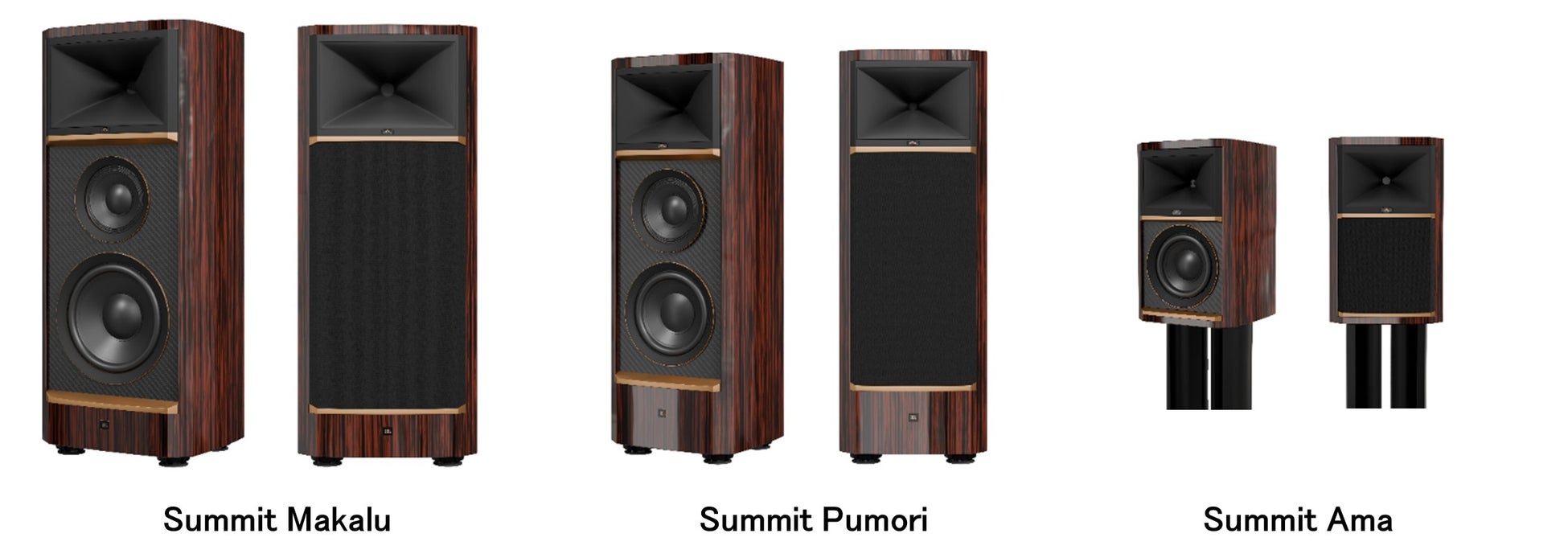 今回登場するJBL Summitシリーズはその伝統を受け継ぎ、来年にはブランド創立80周年を迎えるJBLのエンジニアリングとサウンドへの情熱の集大成となっています。洗練されたデザイン、独自の音響技術、そして、比類なきサウンドクオリティを持ったラインアップとして、ヒマラヤの峰々にインスピレーションを受けて名づけられたSummit Makalu(マカルー)、Summit Pumori(プモリ)、Summit Ama(アマ)の3モデルが一挙に登場します。