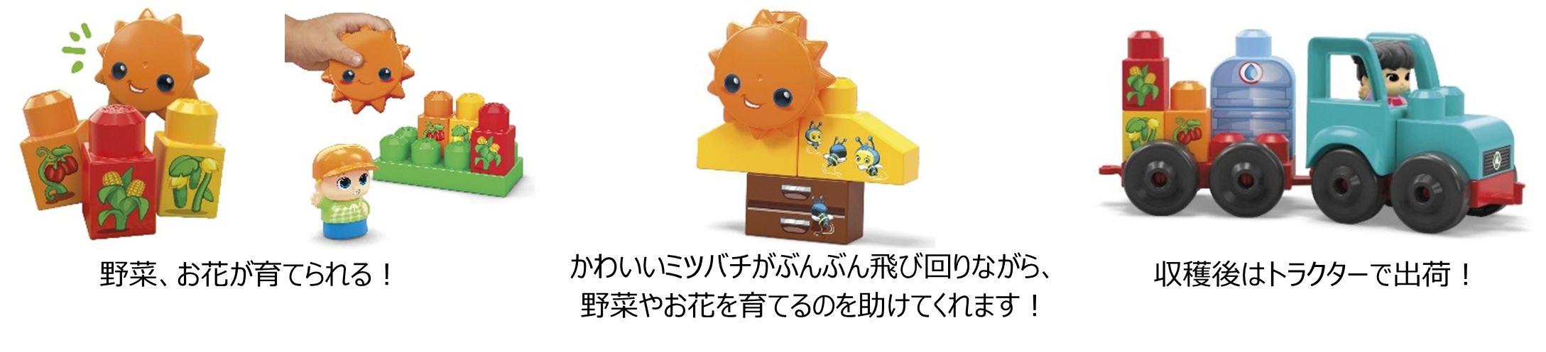 「メガブロック グリーンタウン ミツバチとたのしい農場 トラクターのセット」 詳細