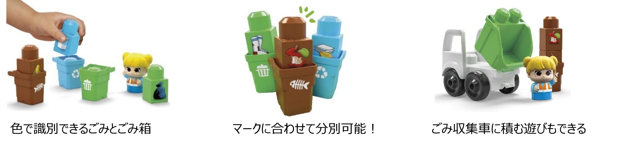 景品 :「メガブロック グリーンタウン ごみの分別とリサイクル ごみ収集車のセット」を5名様にプレゼント