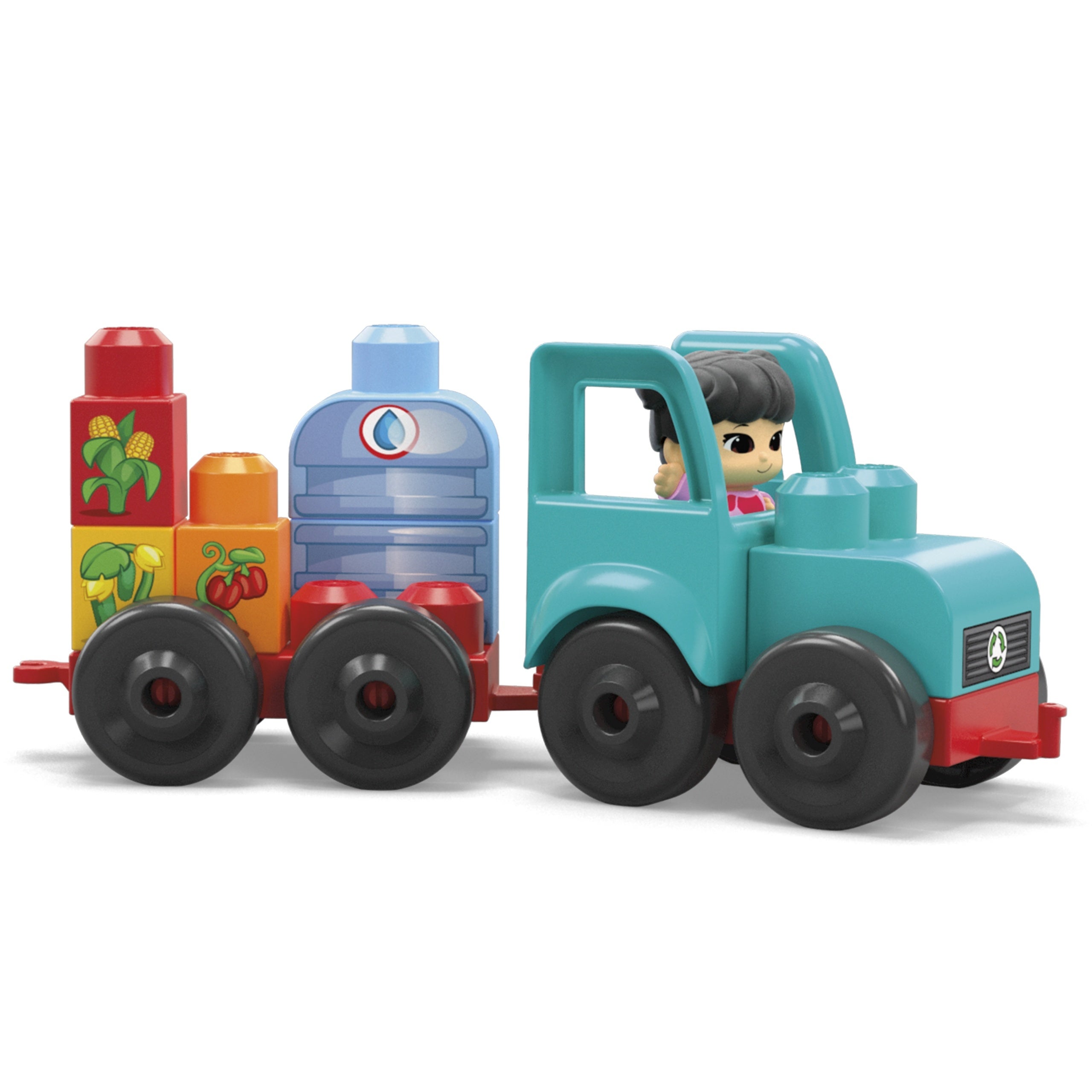 トラクターとキャラクターを含めた全51ピースで、野菜や、ニワトリを育てたり、雨をためて作物に水をあげたり、サステナブルなエコファーム体験ができるブロックセットです。収穫した野菜はトラクターに乗せて出荷することができます。作物の品質を保ったり、トラクターの環境負荷を減らすために近くのお友達に届けたりと、お子さまの想像力を鍛えるだけではなく、作物の育成やニワトリのお世話を通して、社交性、情緒、手先の器用さを育むことができる商品となっており、生物の多様性への理解や、他の生き物への尊重などがテーマになっているセットです。