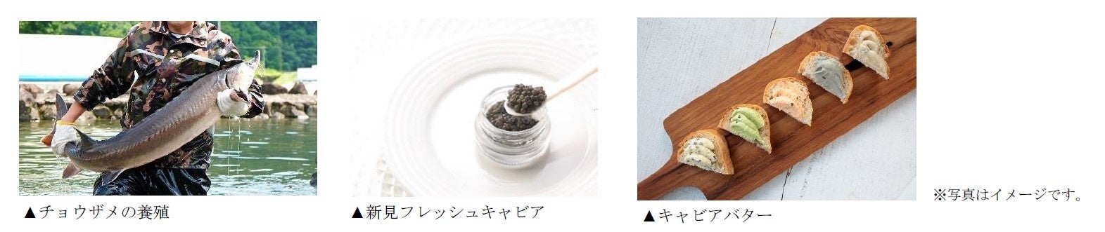 岡山県新見市のカルスト地形特有の硬水の流れる自然豊かな環境で飼育されたチョウザメから採れた国産キャビアの専門店「蝶鮫屋」。「新見フレッシュキャビア」は、高品質な素材をそのままの味で実感していただくため「非加熱」「塩分ひかえめ」で製造後、すぐに瞬間冷凍することで新鮮なキャビア本来の旨味を閉じ込めています。一般的な輸入品のキャビアは加熱殺菌しているものが多く、塩辛くプチプチとした食感であることに比べ、新見フレッシュキャビアは柔らかく非常に繊細で、口に含むと“とろり”とした卵本来の濃厚な旨味が広がり、華やかな香りと余韻を味わっていただくことができます。エンペラーフィッシュとも称されるチョウザメの料理もございますので、和洋酒とともにお楽しみください。当店オリジナルのキャビア・キャビアバターの販売もいたします。