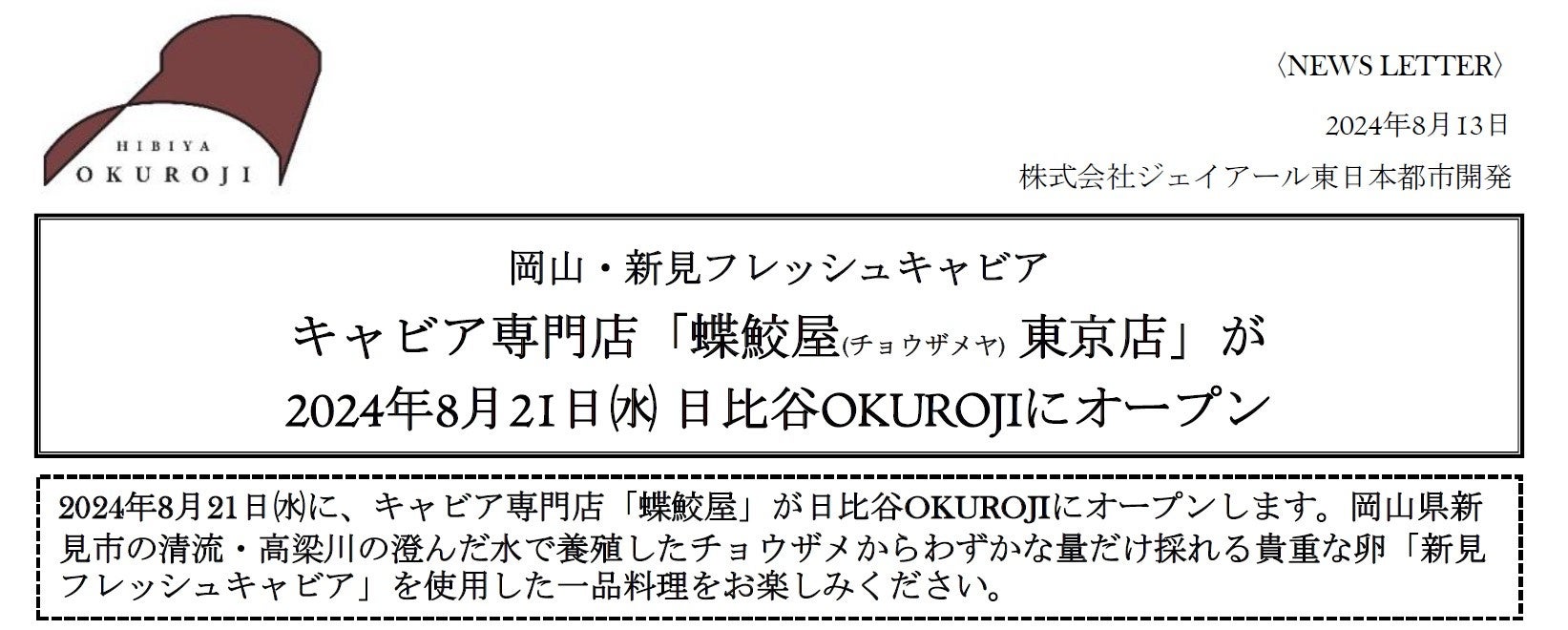 2024年8月21日㈬ キャビア専門店「蝶鮫屋(チョウザメヤ) 東京店」が日比谷OKUROJIにオープン