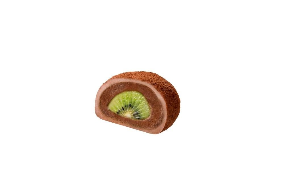濃厚な甘みと爽やかな風味が特徴の香川県産のキウイ「香緑」と、ベルギー産チョコレートを使用した濃厚でなめらかなチョコレートクリームを、ココア入りのもっちり食感のお餅で包み、ココアパウダーで贅沢にコーティングしました。