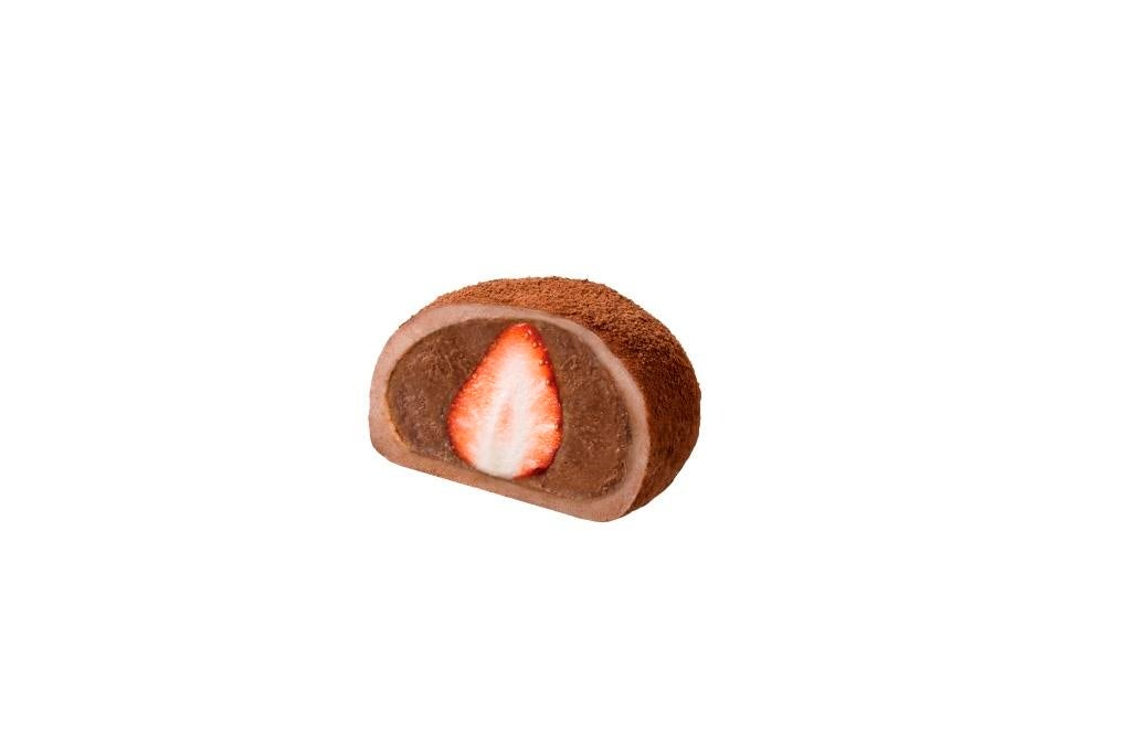 華やかな甘さの中にほどよい酸味を感じる栃木県産のとちおとめと、ベルギー産チョコレートを使用した濃厚でなめらかなチョコレートクリームを、ココア入りのもっちり食感のお餅で包み、ココアパウダーで贅沢にコーティングしました。