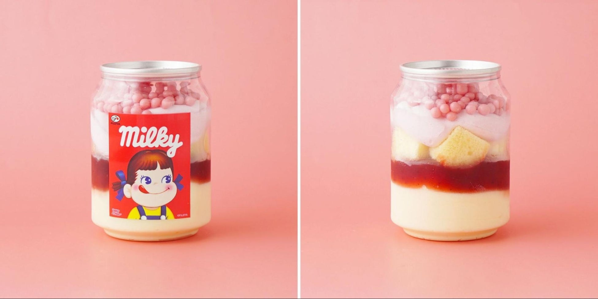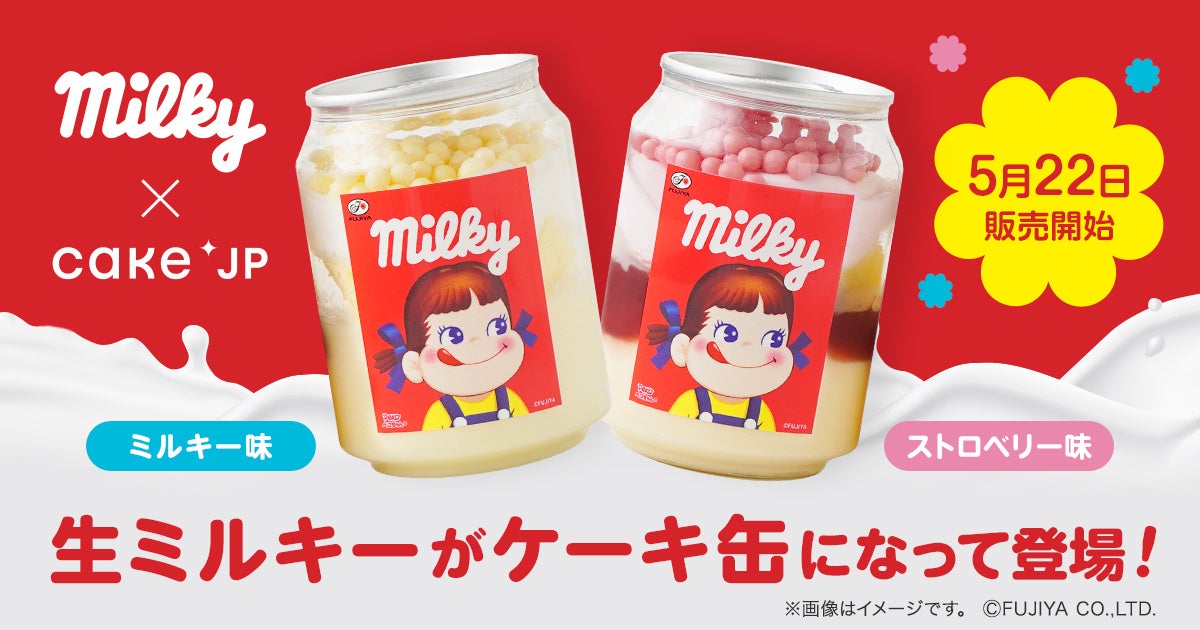 Cake.jpと不二家のロングセラー商品「ミルキー」がコラボし、ケーキ缶になって登場!❝ミルキー❞を存分に楽しめる、「ミルキー」好きのためのスイーツ