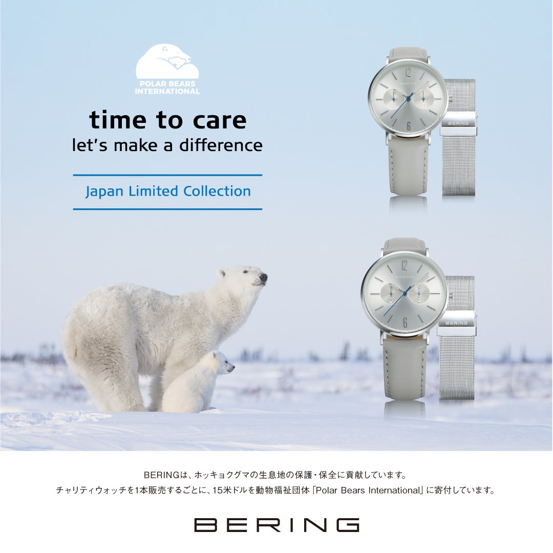 2010 年にデンマークの冒険家Rene Kaerskov(レネ・ケルスコフ)によって創設。神秘的で儚くも力強い氷の世界「北極」の地と、デンマーク独自のミニマルなデザインを融合させた革新的なアイテムの数々が特徴です。北極の大空を悠然と浮遊するオーロラの流線的なフォルムと光彩、永久凍土の強大無比の頑強さ、全てを包み込む壮大な癒しの力。それらすべてからインスパイアされたベーリングのものづくりは「常に流れつづける時の中でも、壮大な北極の自然と同じように変わる事なく永遠に輝き続ける」という哲学がこめられています。時が経っても美しく残る時計、それがベーリングの信条です。時代を超えてエレガントで、長持ちし、耐久性のある素材を使用した製品を設計しています。さらに、ベーリング独自のチャリティー活動「time to care」の取り組みを通し、シロクマの保護活動を行う「Polar Bears International」をブランド創立当初より支援しています。寄付金は特にアラスカやノルウェーにいるシロクマの研究や保護に使われます。