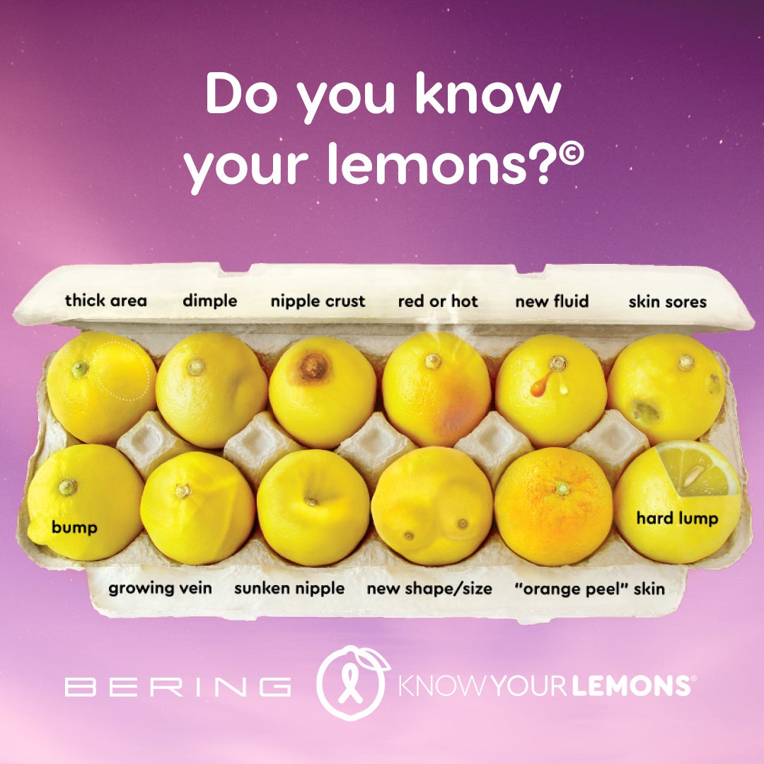 Know Your Lemons財団は、祖母と親友を乳がんで亡くしたデザイナー、コリーヌ・エルズワース=ボーモント博士によって2014年に設立されました。彼女は、楽しく、身近で、包括的な方法で症状や検診の教育を通じて乳がんの早期発見を改善するための取り組みとして、#knowyourlemonsキャンペーンを創設しました。