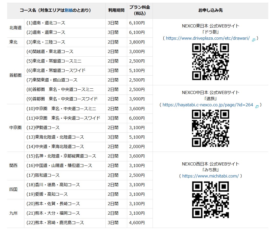NEXCO東日本 公式WEBサイト「ドラ割」