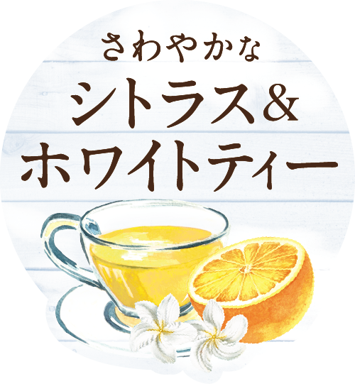 さわやかで心地よいシトラス系にホワイトティーが重なった心地よい香りです。